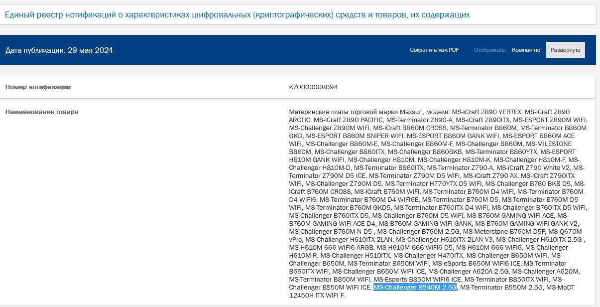 À l’occasion d’un dépôt effectué auprès de l’EEC en mai dernier, l’entreprise Maxsun avait d’ailleurs enregistré plusieurs modèles en B840. À l'époque, nous supputions une erreur ; ce n'en était finalement pas une.