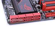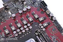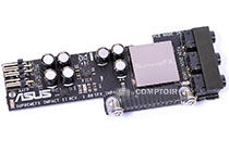 ASUS équipe sa carte avec un étage d'alimentation costaud à huit phases construit autour de composants nippons. L'étage a fait ses preuves mainte fois lors de sessions d'overclocking extrème.