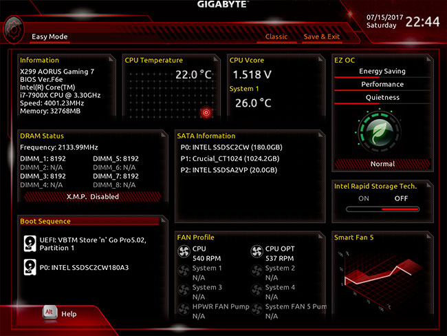 Le mode EZ de l'UEFI Gigabyte