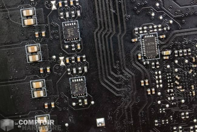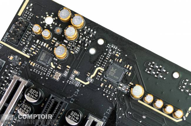Pour l'audio MSI continue son choix de délaisser un système basé sur les meilleurs composants passifs au profit du classique ALC1220 + DAC ESS Sabre. Bien que l'ajout d'un amplificateur dédié pour les prises casques permette d'améliorer le rendu, il est regrettable de ne pas avoir rajouté quelques centimes - vu le tarif - pour booster l'ensemble. Par contre l'utilisation de couches de PCB et d'une isolation dédiée devrait permettre un meilleur rapport signal/bruit et un son correct.