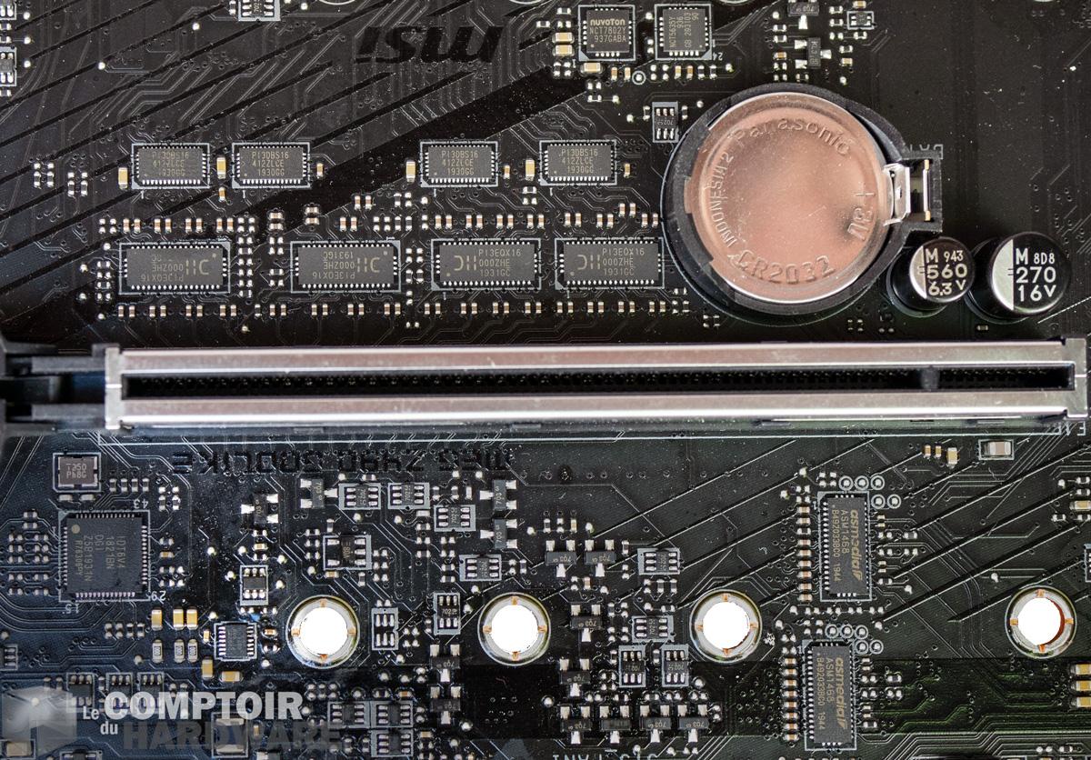 MSI n'a toujours pas été tenté d'utiliser des condensateurs non chimiques comme des WIMA pour ses cartes mères haut de gamme, ce qui nous déçoit légèrement