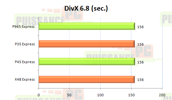 Tout d'abord qu'en est-il de l'encodage avec DivX 6.8 d'un fichier MPEG2 de 145Mo? Les temps d'encodage sont exprimés en secondes, la valeur la plus faible est la meilleure.