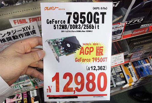 Petite anecdote amusante pour finir la soirée, avec le lancement par la marque Cleverly d'une toute nouvelle carte graphique qui défraye la chronique (c'est vraiment le cas de le dire...). La marque japonaise semble sortir en effet d'une longue hibernation puisqu'elle vient de mettre sur le marché une GeForce 7950GT AGP, non vous ne rêvez pas ! Dotée de fréquences de 500MHz pour le GPU et 1200MHz pour les 512Mo de GDDR3 qui l'accompagnent (sur bus 256-bit s'il vous plaît), la carte sort donc environ 3 ans et demi après l'heure pour notre plus grand bonheur du soir, que de souvenirs...