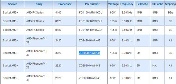 Sauf que redescendons sur Terre un instant : il n'y a bien évidemment pas de Phenom II X8 chez AMD, et une simple petite recherche avec les numéros de série des AMD Phenom II X8 en question, cités par ECS, permet de constater qu'il s'agit en réalité des premiers noms donnés aux Engineering Samples de Bulldozer chez AMD, avant que la dénomination "FX-8000" ne soit adoptée.