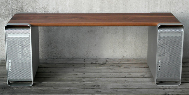 Ce bon vieux PowerMac G5 ne fait plus partie du catalogue Apple, remplacé par les Mac Pro. Si l'architecture (massive) de l'ancêtre offrait tout ce qu'il fallait pour aérer le système qu'il embarquait, aujourd'hui, en avoir un dans les pattes peut être assez ennuyeux, surtout si vous vivez dans 20m². Les gars de chez Projektgalerie (oui, ils sont allemands) ont trouvé une solution pour leur donner une seconde vie en les transformant en mobilier de bureau.