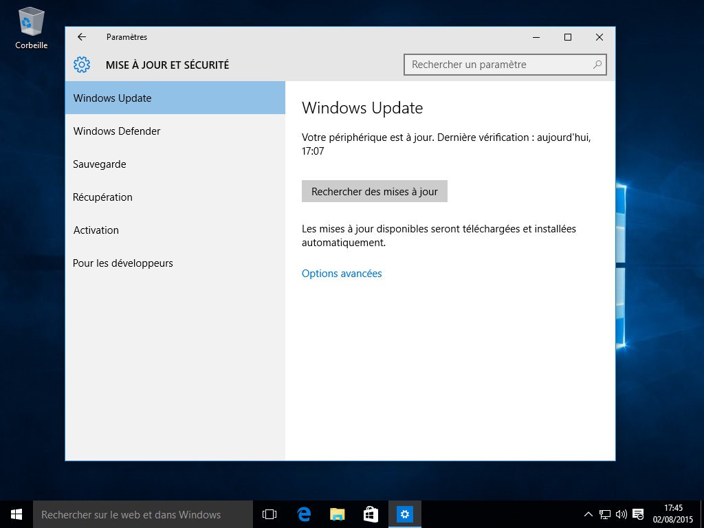 Comme vous l'avez certainement déjà lu, trois points sont à surveiller au niveau des mises à jour. Tout d'abord, elles sont maintenant obligatoires, peuvent décider d'un redémarrage planifié de la machine sans votre accord et sont partagées en Peer-to-Peer (P2P), ce qui permettra à votre machine (ainsi qu'à votre connexion internet) de remplacer les serveurs Microsoft. Pour avoir accès aux réglages de ces dernières, on passe par le menu "Paramètres" du menu démarrer et on se rend dans l'outil "Mises à jour et sécurité".