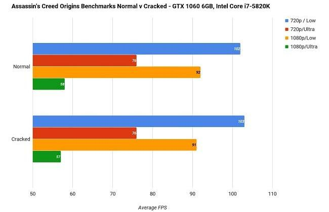 Attention, tel qu'avec le hack de Denuvo 4.8, les protections d'Assassin's Creed Origins ne sont pas réellement désactivées et continuent en réalité de tourner en arrière-plan tel qu'avec la version légale du jeu, signifiant qu'une technique similaire a été employée consistant à tromper et passer outre les DRM sans les retirer du jeu pour autant (ce qui serait autrement plus difficile, voire impossible du fait de leur intégration). Il ne font donc pas s'attendre à récupérer les performances CPU quelque peu phagocytées par VMProtect, tel que nous le montre d'ailleurs clairement mais timidement un test de performances entre la version originale et la version piratée effectué par Game-Debate.
