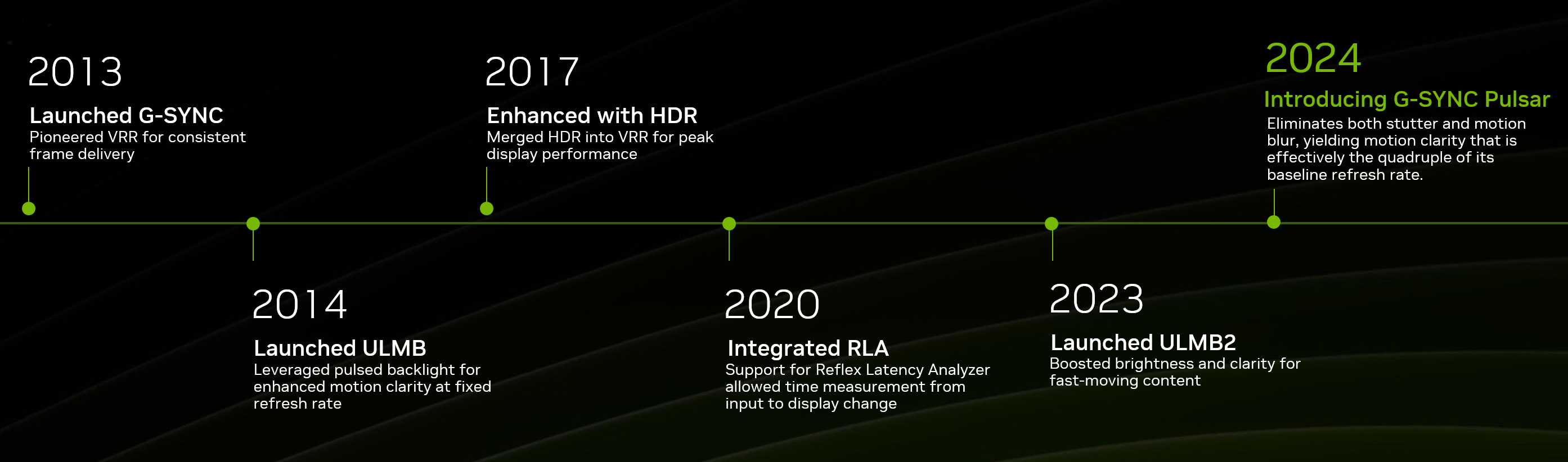 Au sujet de G-SYNC, NVIDIA enrichit sa solution avec G-SYNC Pulsar. L’entreprise présente Pulsar comme « une nouvelle technologie offrant une clarté de mouvement quatre fois supérieure, ainsi qu'une expérience de jeu à taux de rafraîchissement variable (VRR) fluide et sans déchirure ». Elle fera ses débuts sur des moniteurs nouvellement annoncés, notamment le ROG Swift 360Hz PG27AQNR d'ASUS, le Predator XB273U F5 d'Acer et l'AGON PRO AG276QSG2 d'AOC. Ce sont tous des écrans QHD offrant un taux de rafraîchissement de 360 Hz. Nous attendrons les tests indépendants pour jauger des allégations de NVIDIA sur Pulsar.