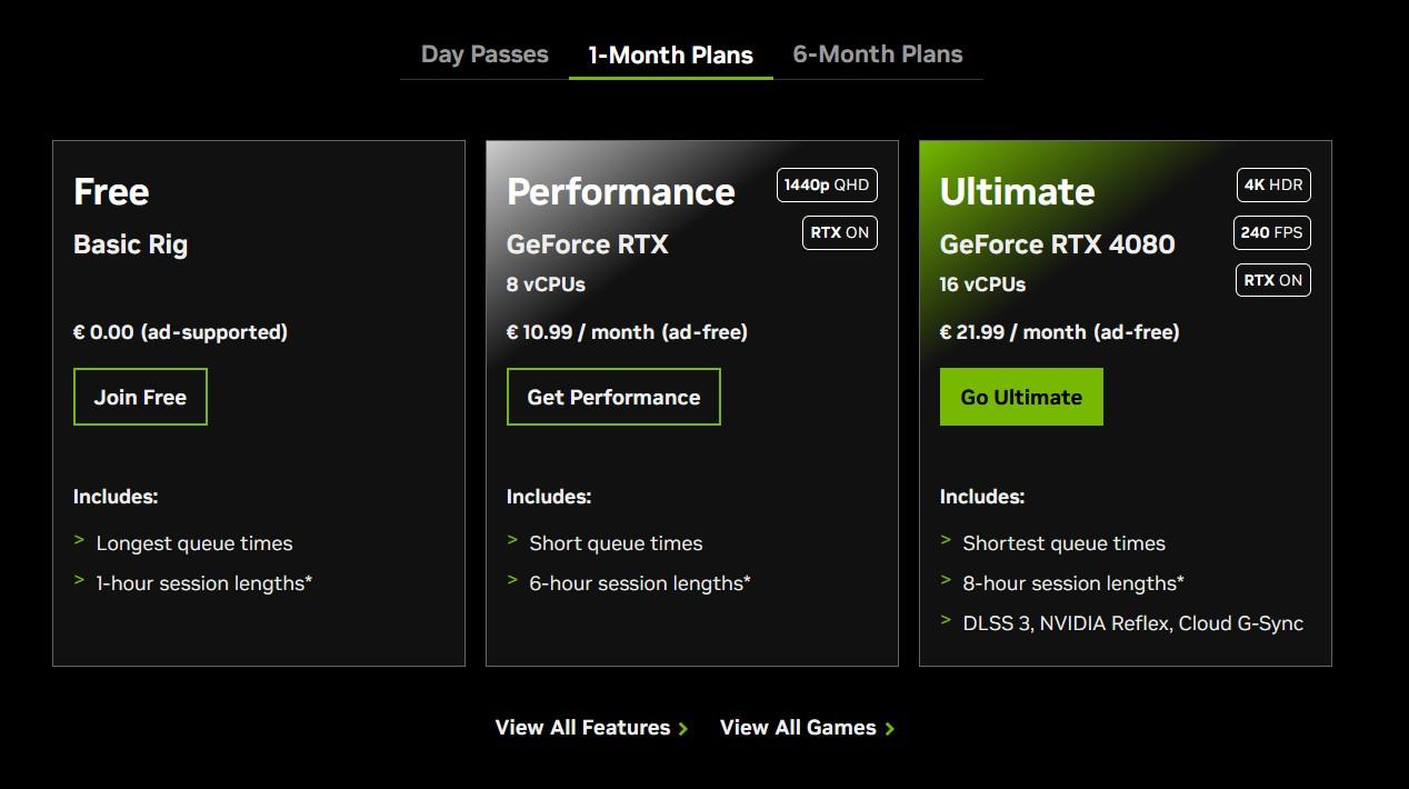 Déjà , sachez que l'abo RTX 3080 n’a plus cours depuis la sortie des GPU Ada Lovelace : il a logiquement été supplanté par une formule RTX 4080 exploitant, comme son nom l'indique assez bien, des GeForce RTX 4080. Ce meilleur niveau d’abonnement, qualifié d’Ultime, autorise toujours des sessions de 8 heures, jusqu’en 2160p à 120 images par seconde, voire 240 dans certaines productions (et pas avec n’importe quel terminal).
