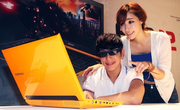 Samsung ne se concentre pas que sur les Ultrabooks qui sont la nouveauté sur laquelle il est important de surfer, mais pas celle qui rapporte le plus. Sa gamme Series 7 est orientée Gamers et a le droit à un refresh, avec comme le montre l'image ci-dessous une robe jaune flashy. D'emblée : on aimera, ou on detestera mais le juste milieu paraît difficile ! Cette coque entoure une dalle LED 3D de 17.3" 120Hz , dont la résolution est de 1920 x 1080pixels. Sous le capot, la HD 7870M d'AMD remplacera la GTX 675M de NVIDIA, le processeur sera un Core i7-3610QM accompgné de 8Go de DDR3-1600MHz.