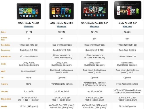 Récapitulatif de la grande famille Kindle Fire HD/HDX (cliquer pour agrandir)