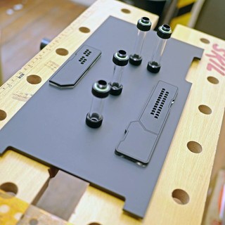 Une plaque de séparation verticale permet d'isoler le compartiment avant, dédié au watercooling, et de le cacher des vues avec l'aide des portes. Cette plaque sert également à relier les différents éléments watercoolés entre eux, car des canaux internes permettent la circulation du liquide. Petit raffinement supplémentaire, des trous sont percés sur les bords pour y laisser passer proprement les fils des câbles d'alimentation.