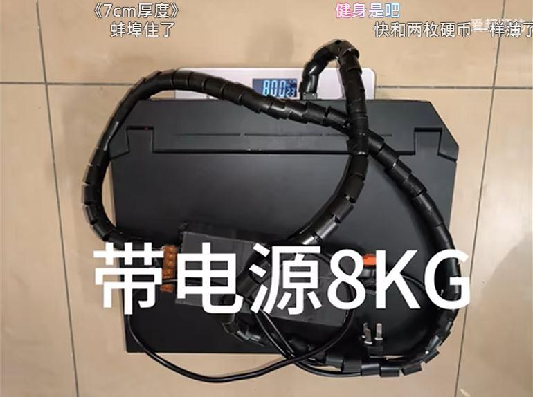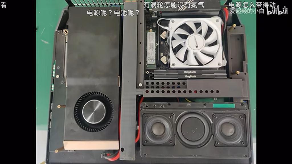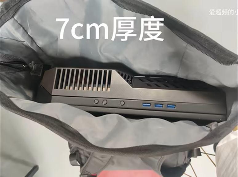 Un moddeur chinois, dont le nom peut se traduire par « adepte de l'overclocking », a publié sur Bilibili une vidéo de sa création : un « ordinateur portable » équipé d’une GeForce RTX 4090 desktop de type blower, d’un Ryzen 9 7950X3D, de 64 Go de DDR5-6800 (2 x 32 Go) et d’un SSD Intel Optane P5800X, le tout installé sur une carte mère Asus ROG STRIX B650E-I Mini-ITX. La configuration intègre même deux haut-parleurs de 20 W (peut-être pour couvrir le raffut du système lorsqu'il turbine).