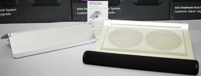 On termine le tour des produits présentés par des engins un peu étranges. Pour avoir moins de référence de dissipateurs pour ordinateurs portables, ils sortent le MasterPal Mobile qui permet de choisir d'avoir de la dissipation passive ou active et d'avoir plus ou moins d'inclinaison. L'ensemble est modulable et a l'air assez bien pensé sur le papier, reste à voir à quel prix ils le vendront et si les utilisateurs y trouveront un réel intérêt.