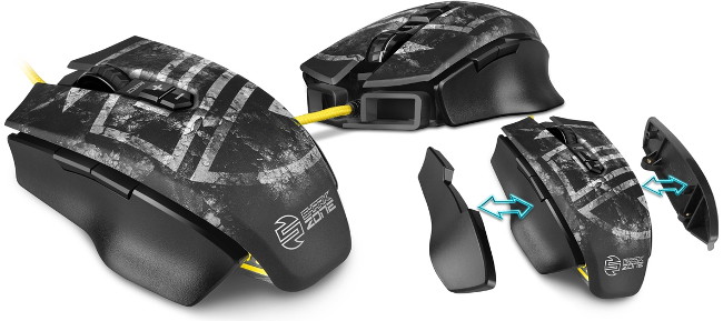 Cette bestiole mesure 121 mm de long pour 80 mm de large et 42 mm de haut à son point culminant, et pèse 135 g qui risquent de ne pas plaire aux amateurs de souris légères. On est proche d'une Reaper de chez Cooler Master, tant dans les caractéristiques que dans la forme. D'ailleurs, on trouve le même capteur laser (Avago ADNS-9800) à 8200DPI à l'intérieur, par contre sept boutons contre huit pour le modèle des maîtres de la coolitude (un bouton sniper au pouce en plus), mais huit profils là où la Reaper n'en embarquait que quatre. A noter aussi qu'elle est livrée avec des plaques de côté interchangeable pour mieux s'adapter à votre mimine. Vu qu'on peut la comparer à un mulot robuste, la M50 pourrait donc trouver un certain intérêt en fonction des matériaux qu'elle embarque, surtout qu'avec un prix conseillé de 39,99€, elle n'est pas la plus coûteuse dans sa catégorie.