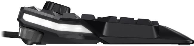 Ce clavier avait tout d'un périphérique pour joueur, avec ses commutateurs MX Red, une réactivité surprenante et un N-key rollover de haut niveau. Cependant, la firme se défendait d'avoir présenté un périphérique pour les joueurs, ce segment appartenant à certains de ses clients spécialisés dans la chose. Avec le MX Board 9.0, Cherry semble avoir oublié cette idée et présente un engin absolument conçu pour les joueurs. Touches de macro (15), placement des touches rapproché, keycaps incurvées, molette de réglage (pour le son, le rétroéclairage et les modes de rétroéclairage), commutateurs MX Red, Blue ou Brown, blocage des touches Windows, pieds réglables via un système de vis (sera-t-il solide ?) et rétroéclairage RVB assurent que la cible est bien le joueur et non le professionnel ou Mr-tout-le-monde.