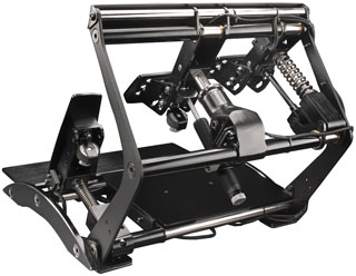 Évidemment un montant vient supporter les deux pédales avec deux larges butées en guise de soutien qui seront plus que bienvenues, compte tenu de la pression qu'est capable d'encaisser la pédale de frein, pour rappel 90kg, ajustable. Autres changements notoires, l'embrayage a été quelque peu modifié pour coller au comportement d'une "GT haute performance", sans plus de précision, et l'espacement des pédales se voit légèrement augmenté par rapport au V3, pas sûr que ce soit idéal pour les amateurs de talon-pointe d'autant que cet espacement reste malheureusement figé. Enfin, la pédale de frein accueille d'emblée un amortisseur permettant au choix un réglage supplémentaire assez fin de sa résistance et/ou de simuler un mécanisme hydraulique.