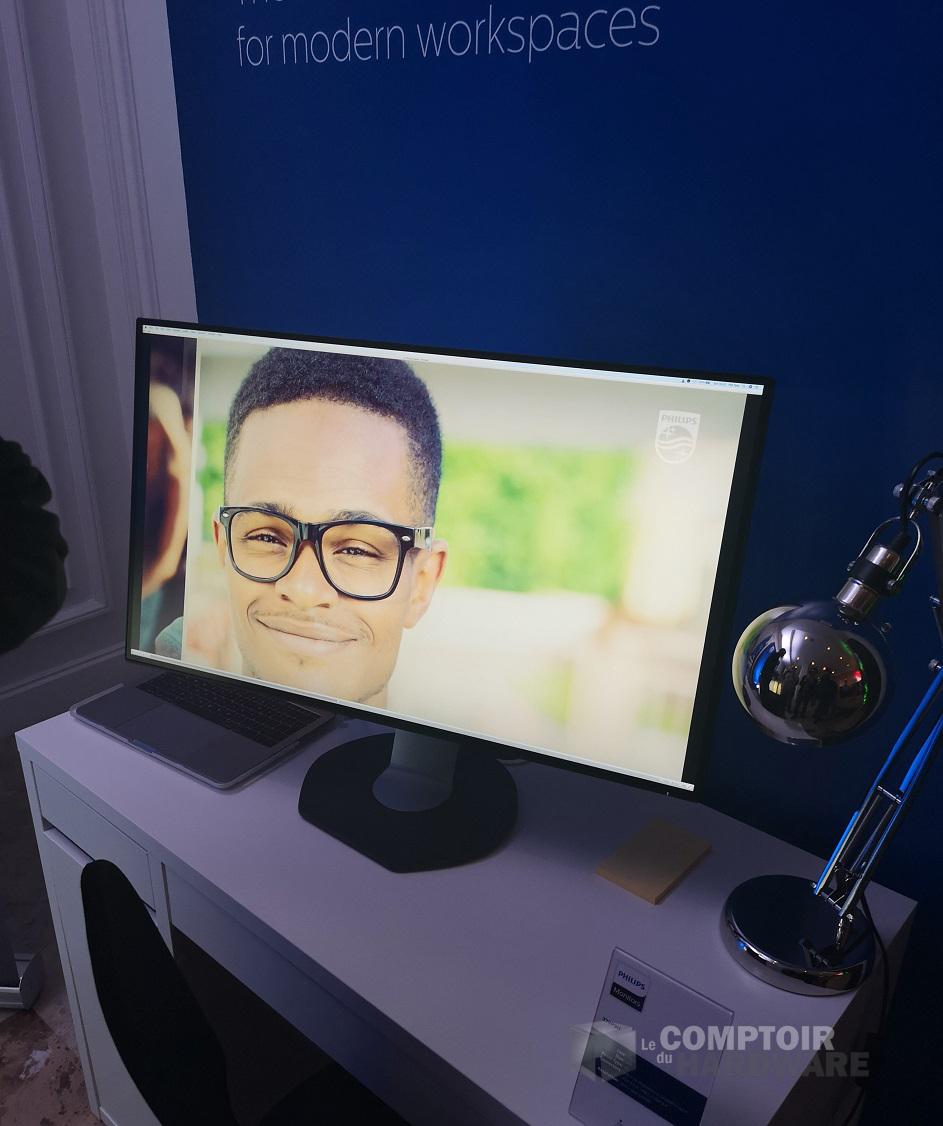 On retrouve des noms plus ou moins familiers, comme l’énorme 499P9H disponible depuis le début de l'année, mais aussi des évolutions de références existantes plus menues en 24 et 27" planifiées pour juin, et toujours des plus grosses diagonales en 32 et 43", la première étant arrivée en mars et l'autre étant planifiée pour octobre 2019. Au passage, Philips vante aussi les mérites du nouveau format super tendance, le SuperWide Quad HD en format 32:9, un 499P9H pouvant remplir le rôle de deux écrans 27" 16:9 sans en avoir les inconvénients. C'est aussi là toute l'importance de la présence d'un interrupteur multi-client KVW intégré permettant de contrôler deux machines différentes à partir de l'écran et de passer aisément de l'une à l'autre, tout en ayant qu'un seul ensemble clavier-souris. Bref, rien de très nouveau jusqu'ici sous les nuages de Madrid, juste des rappels du pied.