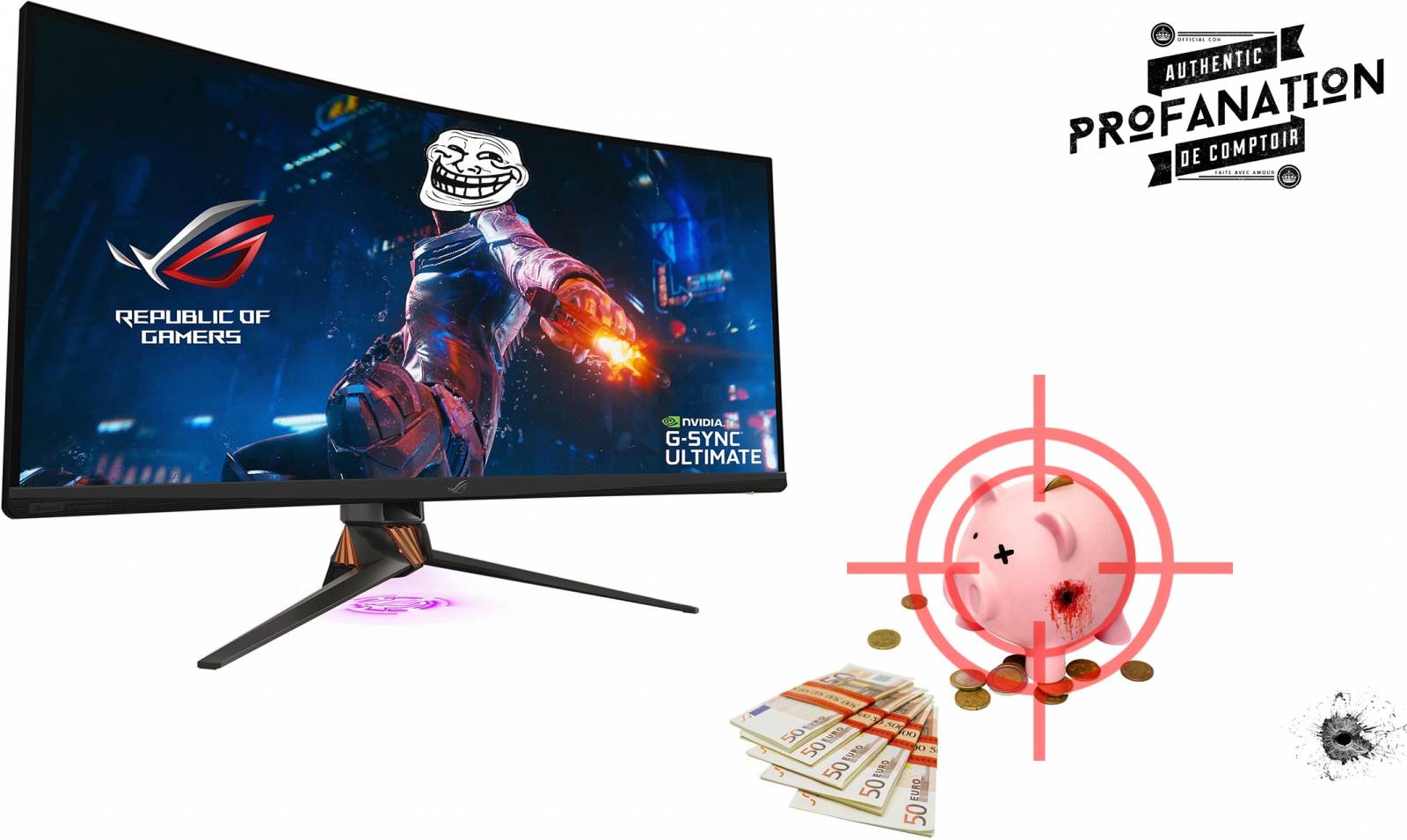Il fut attendu pendant très longtemps, le Saint Graal technique de l'écran gaming et grand frère du PG27UQ, cumulant à peu près presque tout ce qui se fait de mieux sur ce terrain à l'heure actuelle, mais que beaucoup de joueurs devront se résoudre à zyeuter de derrière les vitrines ou se contenter de le caresser en rayon du fait d'un tarif prohibitif et inaccessible aux masses. 2699€, le prix à payer pour un écran de pointe en matière de technologies et qui peut donc se permettre une telle envolée, ce qui ne veut en rien dire qu'il ne trouvera pas preneurs, mais signifie que la majorité devra attendre encore quelques temps pour que les coûts des technologies embarquées se tassent.