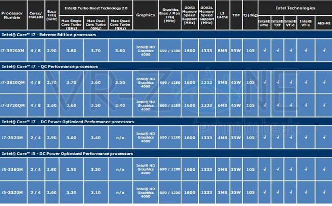 Après la liste complète des Ivy Bridge desktop Core i5 et i7 la semaine dernière, c'est maintenant donc au tour des versions mobiles de faire leur apparition sur la toile, chez nos confrères de VR-Zone Chine pour être précis.