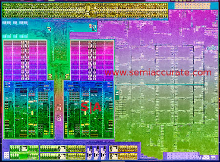 Sur l'image du jour, on voit donc 2 modules Piledriver, soit 4 cores au final. Il y a visiblement 2x2Mo de cache L2, pas de L3, et a priori 384SP pour la partie graphique si elles est bien en VLIW4 et directement dérivée de Cayman comme cela a été annoncé, soit plus efficace que les 400SP VLIW5 de Llano, à la manière des Cayman face à Cypress. SemiAccurate estime par ailleurs la taille du die à approximativement 240mm². Reste plus qu'à attendre donc !