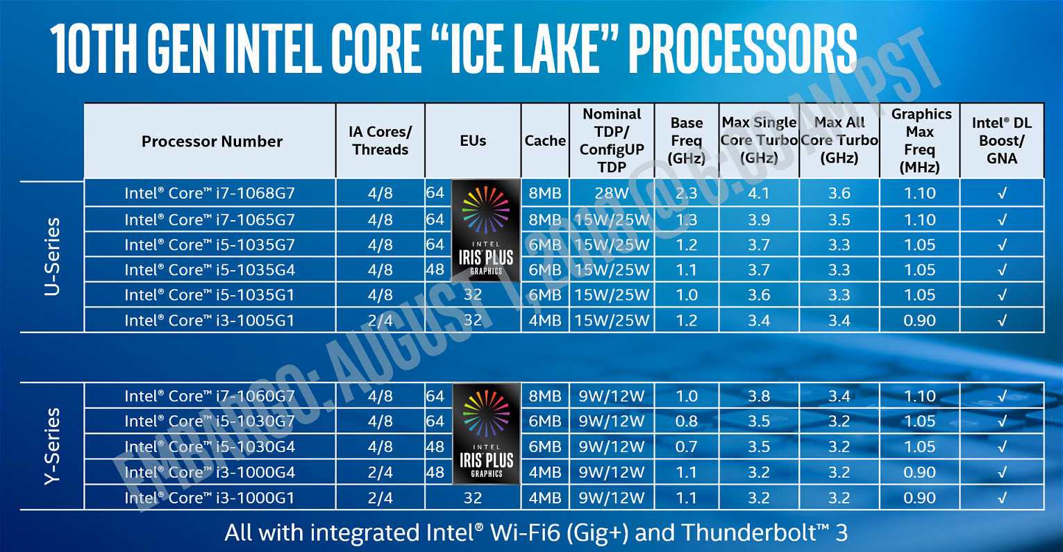 La gamme Ice Lake est officielle, mais sans les prix ! |