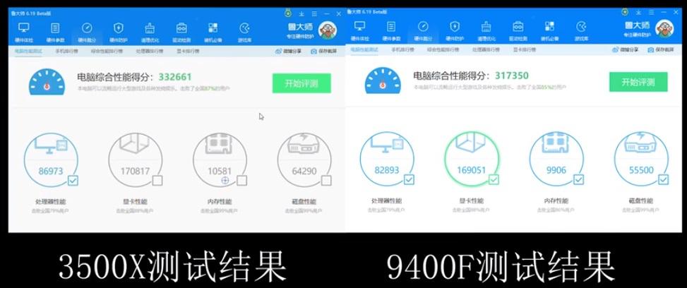 À ceux-ci, on peut aussi ajouter les scores obtenus et validés sous CPU-Z avec l'outil de benchmark intégré face au 9400F, le rival désigné ! L'écart entre les deux s'affiche à 5,52% et 8,05% en faveur du Ryzen, respectivement en monothread et multithread. En parallèle, le nouveau processeur avait également été soumis au benchmark Master Lu - il s'agit plus ou moins d'un équivalent chinois de GeekBench assez couramment utilisé en Asie. On y observe le Ryzen 5 3500X 4,82% plus performant que le i5-9400F. Autrement dit, le 3500X parait bien parti pour observer son homologue de chez Intel dans le rétroviseur, du moins sur le papier et en ce qui concerne les performances, reste la question épineuse du prix. Le i5-9400F se trouve relativement sans concurrence aux alentours des 170€ en France, il est donc normal de penser qu'AMD positionnera son bébé dans ces eaux-là.