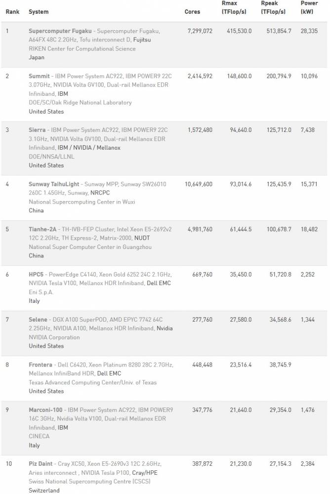 Superordinateur, Top 500 Juin 2020 : Summit doublé (littéralement) par Fugaku ! |