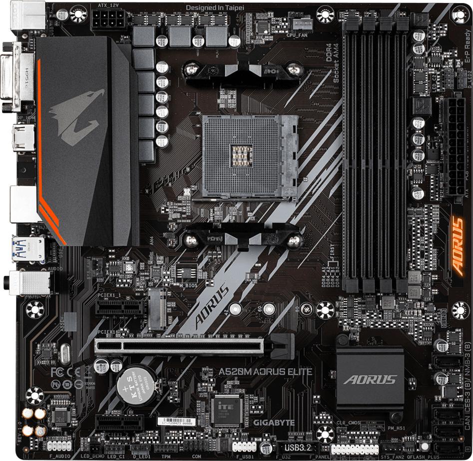 Pour commencer, parlons des modèles A520 AORUS Elite en format ATX et mATX. Ces deux cartes semblent apporter une version assez éloignée du concept d'origine d'AORUS, mais qui permettra d'avoir des cartes mères abordables et avec un équipement correct pour les joueurs les moins fortunés. Certes l'alimentation en 5 + 3 phases n'est pas au top, mais avec des CPU peu gourmands comme des Ryzen 3 ou 5 cela sera amplement suffisant. Petit plus pour le modèle ATX, qui dispose d'un circuit audio un peu plus travaillé, mais qui ne vaut pas celui des cartes AORUS classiques pour autant.