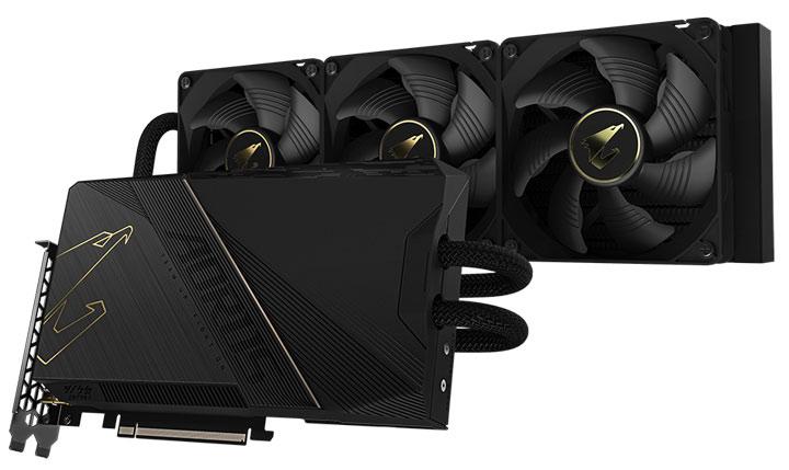 Quant à GIGABYTE, qui peine à fournir autre chose que des rendus 3D pourris, hé bien vous avez droit une fois de plus au refroidissement par air et liquide, avec la RTX 3090 Ti GAMING (aussi en version OC) et la Aorus GeForce RTX 3090 Xtreme WaterForce. Trois modèles jouant la carte de la sobriété élégante, toutes de noir vétues aux discrets ajouts dorés sans RGB ! Sans surprise, les atmosphériques sont triple slot/moulin, mais la version aquatique l’est tout autant avec un radiateur de 360 mm pour être sûr d’y voir large. Avec une alimentation conseillée de 850 W, en même temps, difficile de leur donner tort.
