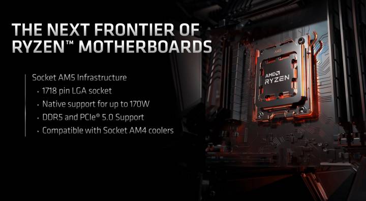 AMD a dévoilé les 3 chipsets compagnon dont nous vous avions déjà parlé, et qui ne laissaient pas trop planer le doute. Le X670E offrira du PCIe 5.0 pour tous les bus, le X670 le limitera au stockage et aux cartes graphiques, tandis que le B650 ne l'aura que pour le stockage, ce qui implique du PCIe 4.0 pour les cartes graphiques et le reste de la machine.