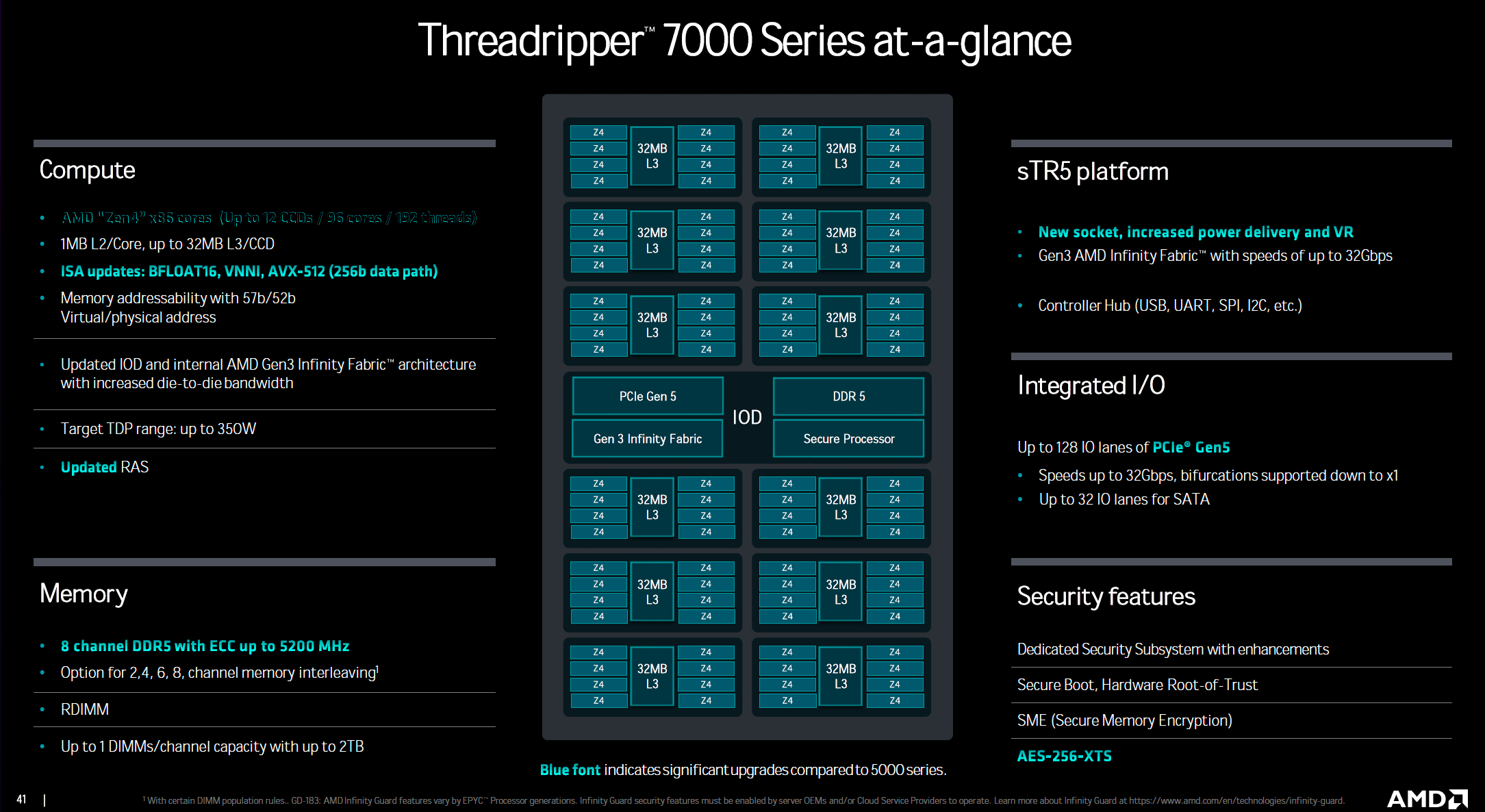 | 7965WX | 24 / 48 | 4 + 1 | 5,3 GHz | 4,2 GHz | 128 Mo | |