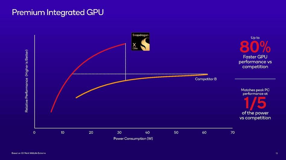 Dès l'officialisation de cette puce gravée en 4 nm par TSMC, munie de 12 cœurs CPU et d'un GPU Adreno, l'entreprise américaine n'a pas lésiné sur les comparaisons vaseuses, avec de belles courbes, bien dessinées et forcément toujours au-dessus de celles des solutions concurrentes.