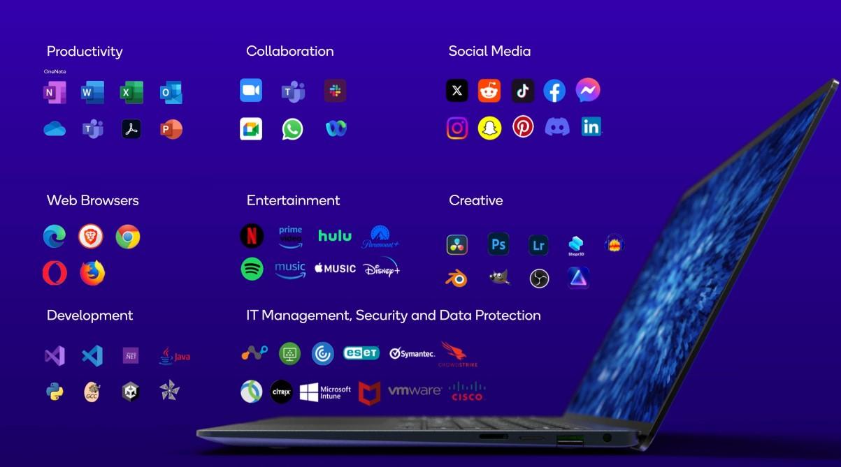 Pour l’aspect logiciel, l’émulation d’applications Windows s’est étoffée au fil des mois. Qualcomm indique avoir collaboré avec Microsoft pour garantir la compatibilité des plus populaires.