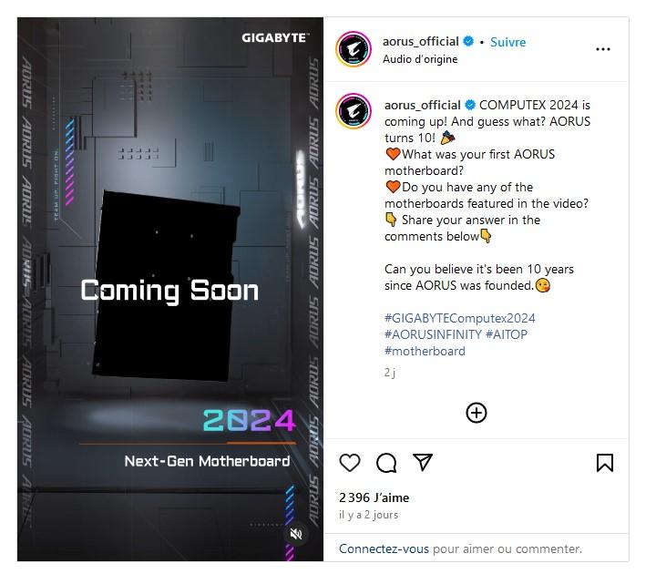 En effet, en principe, la première génération de cartes mères AM5 doit garantir la prise en charge des prochains Ryzen. Au sujet d’Intel, si vous nous autorisez une petite digression, sachez que Gigabyte a fait une annonce préliminaire (du teasing en somme) sur Instagram pour une carte AORUS next-gen appelée Z890 AORUS XTREME AI TOP par plusieurs confrères. Cette référence est certainement pensée pour accueillir un processeur Arrow Lake-S, dont la commercialisation est prévue au cours du quatrième trimestre ; elle est donc en socket LGA-1851.