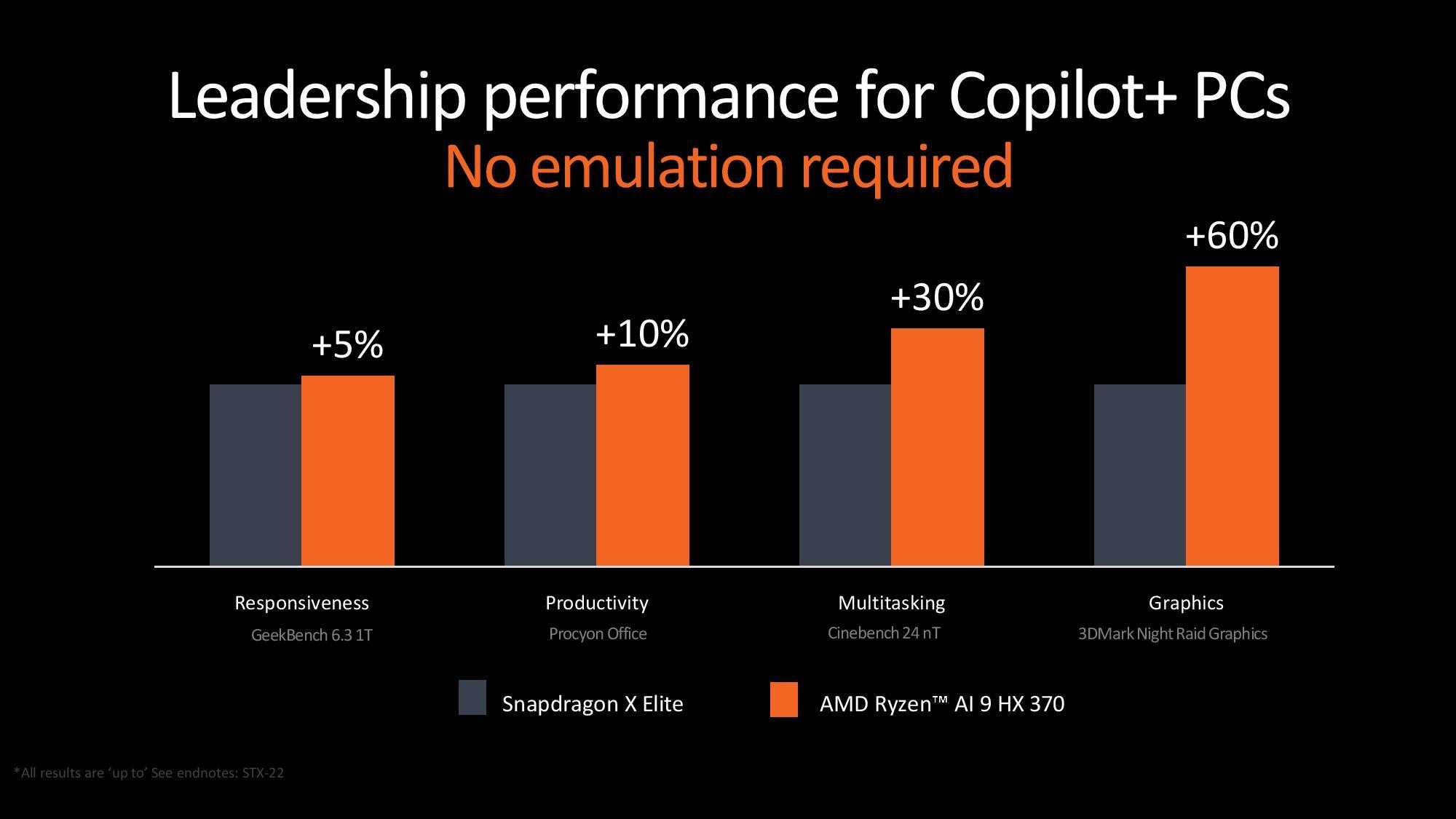L’entreprise met l’accent sur leurs performances IA avec la promesse de 50 TOPS ; une valeur supérieur à celles communiquées pour les Qualcomm Snapdragon X Elite (45 TOPS) et Intel Core Lunar Lake (45 TOPS).
