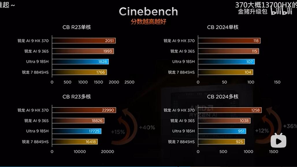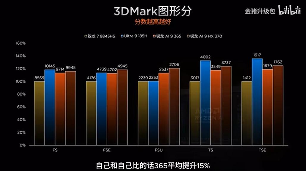 À propos des tests des Ryzen AI 300, une requête Google vous donnera de nombreux résultats. Nous en avons sélectionné deux. Le premier est celui de Golden Pig Upgrade, consultable sur Bilibili. L’examen est en chinois. Il propose néanmoins beaucoup de scores présentés sous forme de diagrammes et des textes en anglais.