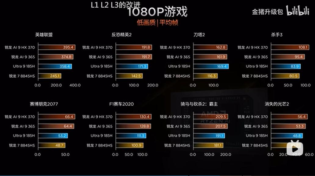 En matière de gaming, Golden Pig Upgrade a jaugé des prestations des quatre processeurs susmentionnés en 1080p dans un large panel de titres.
