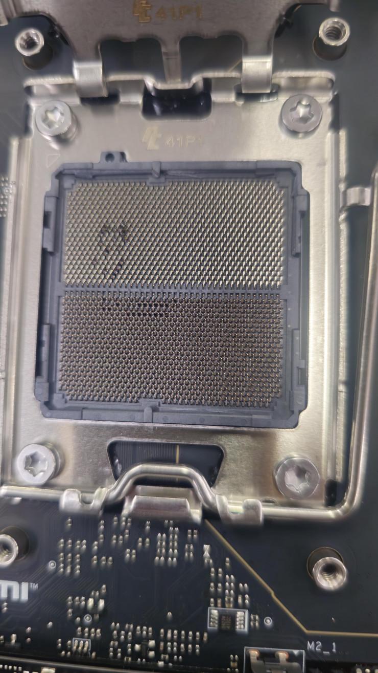 Les photographies de Ryzen 7 9800X3D cramoisis suffisent à jauger de l’ampleur des dégâts. Et au même titre que le pin n’est pas un bois de chauffage très recommandé, les pins d’un CPU AM5 ne sont pas faits pour être brûlés.