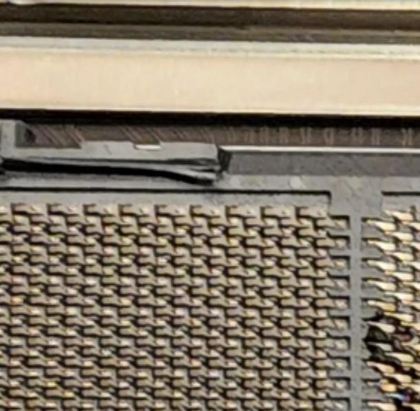 Il illustre son propos de la photo ci-dessous. Elle montre un bord endommagé. Il n’est pas inenvisageable que ce rebord mal raboté ait contribué à une mauvaise installation du processeur dans son socket. Après, c'est peut-être une conséquence plutôt que la cause.