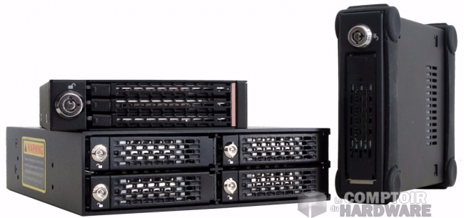Pourquoi ces modèles en particulier ? Au-delà de la conception solide et de la facilité de mise en oeuvre, c'est la compatibilité entre les différents modèles qui est un véritable atout. Les ToughArmor MB994SK-1B et MB991U3-1SB par exemple sont complémentaires. Les supports de l'un s'adaptent parfaitement à l'autre. À l'heure où les SSD se démocratisent, vous pouvez les multiplier dans vos machines et ainsi les rendre transportables si nécessaire. Les boîtiers présentés permettent de combler des baies bientôt obsolètes. Avoir quatre SSD dans une baie 5.25" externe ? Trois dans rack 3.5" ? C'est possible avec les modèles présentés.