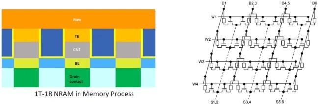 L'objectif actuel de Nantero est de rajouter le transistor de sélection directement dans la cellule, afin d'améliorer le timing et la densité des puces mémoires