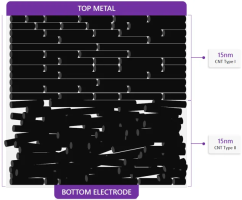 Afin de régler le problème de l'isolation des cellule mémoire, Nantero utilise des couches différente de nanotubes de carbone : une parfaitement alignée, et une autre en dépôt aléatoire