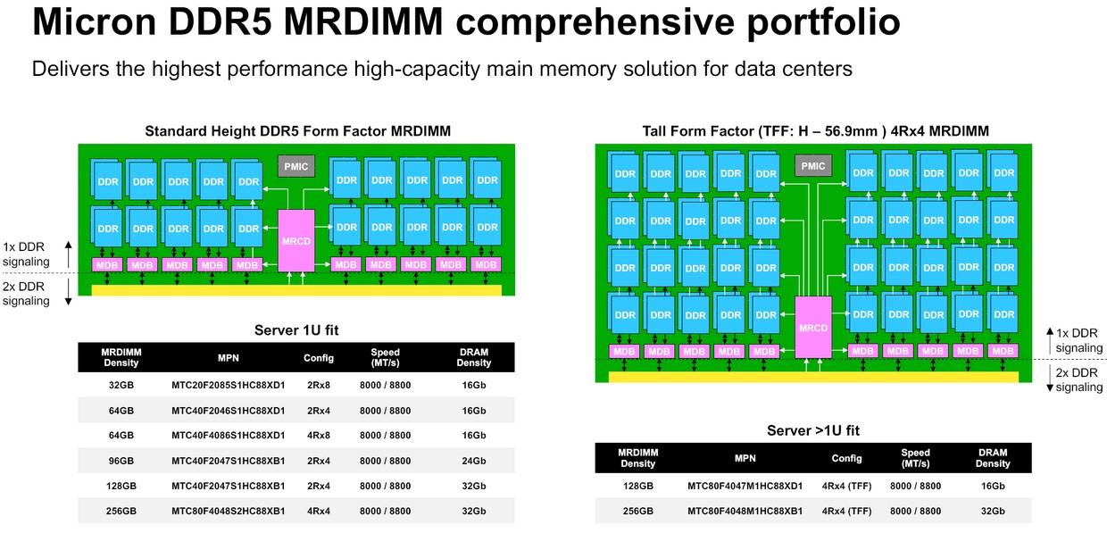 La société commercialise également des versions Tall dans des capacités de 128 et 256 Go. La prochaine génération doit monter à 12 800 MT/s (et la Gen 3 à 17 600 MT/s).