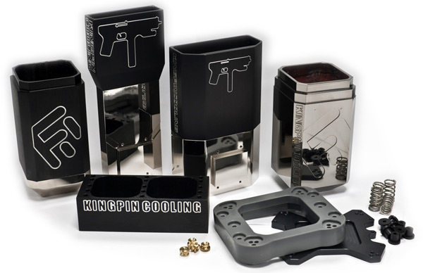 Ce type de matériel ne cible sans doute pas beaucoup d'entre vous, mais même sans être directement concernés, les amateurs de beaux ouvrages apprécieront sans doute à sa juste valeur la nouvelle gamme 2011/2012 de godets LN2 de la marque KPC, alias Kingpincooling. On dénombre ainsi deux nouveaux godets CPU, deux nouveautés également pour GPU ainsi qu'un "pot" pour barrettes mémoire.