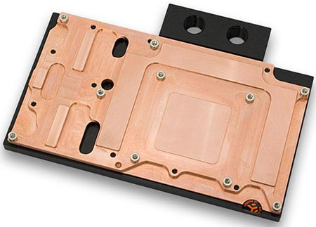 Il recouvre aussi bien le GPU que les VRM et les puces mémoire, du moins celles situées sur la même face. Pour la face inférieure, une backplate est disponible. Il en existera quatre versions, une en cuivre recouverte par un top acetal, la même mais recouverte par du plexi, une en nickel avec au choix acetal ou plexi pour le top. Les 4 possèdent des embouts 1/4". Le prix est respectivement de 89.95 et 99.95$ pour les versions cuivre et nickel.