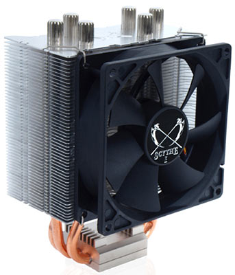 Le ventirad est au format tour, d'une dimension de 102 x 83 x 146 mm et un poids de 450 grammes. La base, en aluminium, est reliée aux ailettes, en aluminium également, via 3 caloducs, en cuivre, de 6mm d'épaisseur chacun. Le ventilateur qui vient refroidir le tout est un 92mm PWM dont la vitesse varie entre 200 et 2500 tours par minute, un débit compris entre 6,7 et 55,55 CFM et un bruit variant de 7,2 à 31,07 dBa. De quoi passer du silence au tsunami d'air et de bruit. Pas de prix annoncé, mais il devrait être doux. (Source : Hermitage Akihabara)