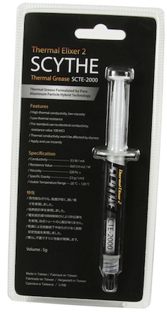 Il est 16h, c'est l'heure du goûter alors quoi de mieux qu'un verre de lait avec un peu de Nutella ? Les gourmands et les moins gourmands connaissent la pub et à quel point cette cochonnerie chimique est tentante ! Toutefois pour revenir à nos moutons, Scythe propose aujourd'hui une pâte thermique à tartiner sur votre CPU ou GPU et non à manger. La Thermal Elixer 2 ayant pour référence SCTE-2000 vient donc s'ajouter aux nombreuses références disponibles sur le marché et s'est améliorée grâce au retour d'experience sur le premier modèle.