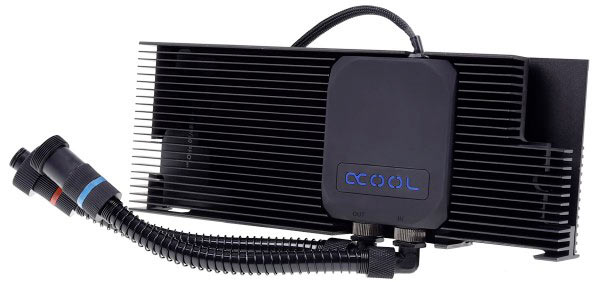 Ensuite, Alphacool vend deux Eiswolf complet, nommés Eiswolf 120 GPX Pro Nvidia Geforce. Ils incorporent le waterblock présenté ci-dessus, et le radiateur/ventilateur de l'Eisbaer. Il y en a un pour les GTX 1070, un autre pour les GTX 1080, toutes faites à partir d'un PCB fait maison Nvidia. Chacun est proposé à 149.95€, ce qui n’est pas donné non plus. Le magasin en ligne annonce des délais de l'ordre de 3 à 4 semaines, après il faut être motivés pour démonter sa carte graphique, au risque de forer une vis, de s'asseoir sur la garantie si jamais la moindre trace de tournevis se remarque sur les vis de serrage, rechercher un espace dans sa tour pour encastrer ce machin dont le poids total est de 3.18kg, et prier pour qu'il ne vous arrive rien.