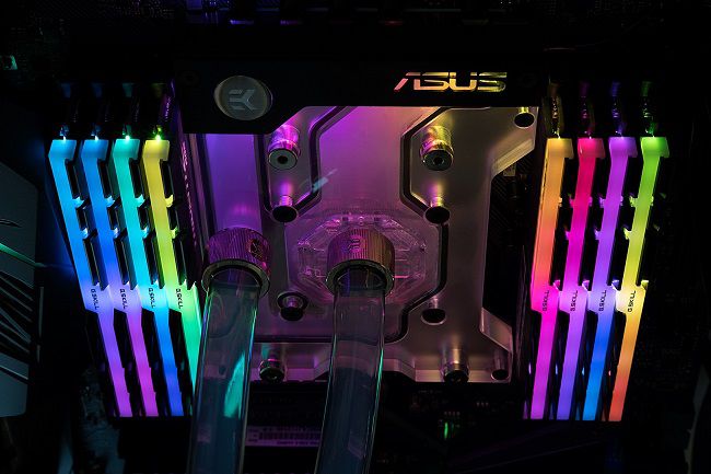 On comprend mieux la chose quand on réalise qu'une bande RGB est intégrée au bloc afin de mieux refroidir mettre en valeur votre configuration. Rassurez-vous, EK a prévu le coup pour les allergiques aux LED en permettant tout simplement le retrait de la guirlande (ou de la remplacer, le cas échéant), et au cas où vous décideriez de garder les loupiottes allumées, Aura Sync sera là pour vous aider à accorder celles-ci selon vos goûts.